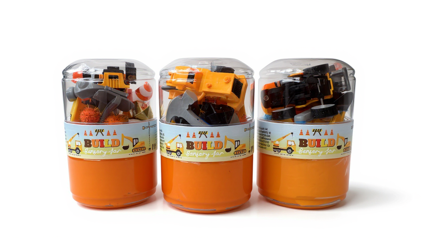 From a tough construction truck and hardworking worker figurine to rocks, cones, and a pile of fun add-ons, this duo is perfect for building scenes that spark storytelling and sensory fun β all packed in easy-to-carry, reusable jars.