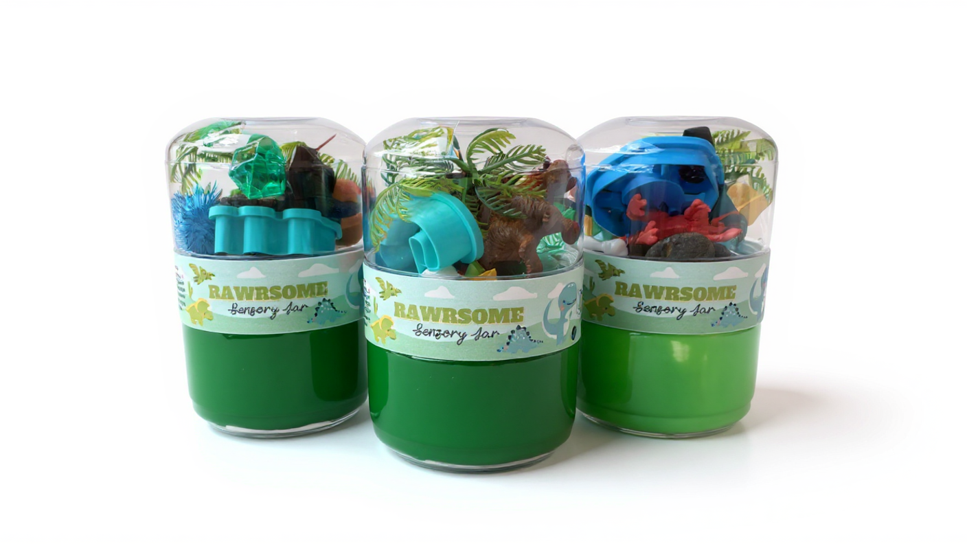 With a dinosaur figurine, faux trees, tiny rocks, and even a dinosaur bone, this kit turns any table into a mini excavation site β all packed into two travel-ready jars for hands-on fun wherever adventure strikes.